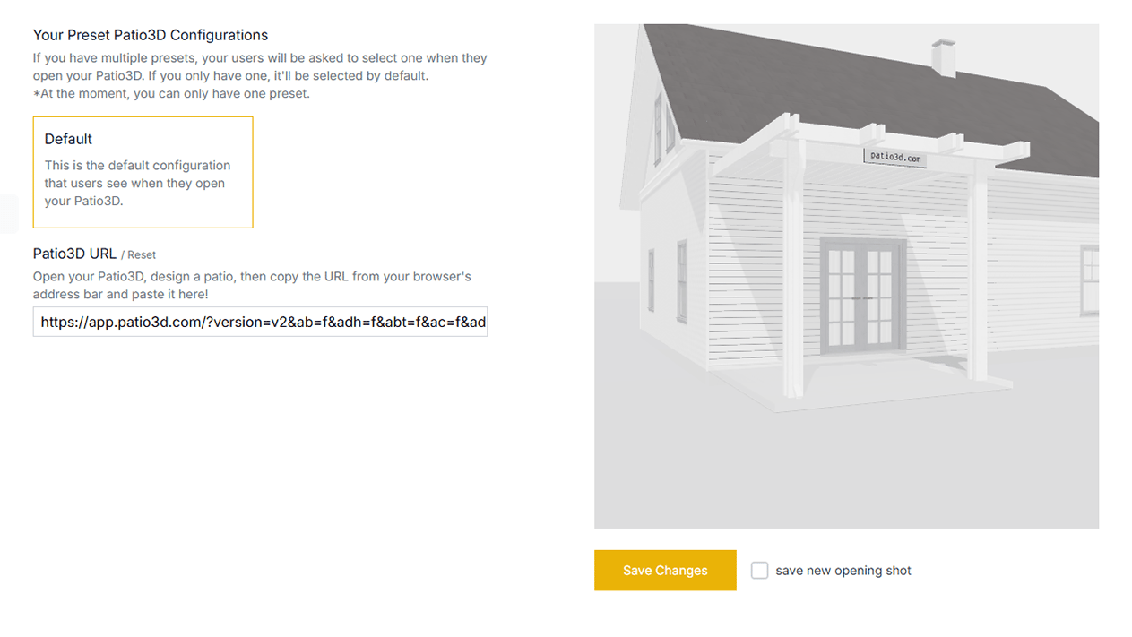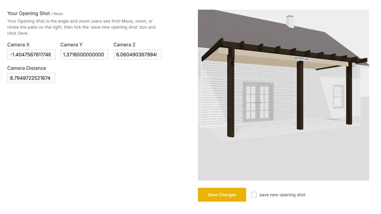 Yet another update ensuring you stay the dealer everyone talks about and buys from — making sure your competitive edge is never matched! Learn more at patio3d.com. 🎨 Customization featuresNow you can fully brand and personalize your Patio3D! Update the opening shot! Whether you prefer to show your patio from the front, top, or side — anywhere, now you can! Update the default patio configuration! If a white insulated 10x25 patio is your most popular or profitable build, you can now make it the default design people see when they first open your Patio3D! Coming soon: not just one, but multiple starting patio configurations users can select and start with. Coming soon: Users will be able to adjust the model house colors as they adjust their patio colors, helping them feel confident the colors match, increasing trust, reducing risk, and bringing them closer to the finish line! 📍 More accurate address-to-loadsClick on the "Loads" tab to enter any address [try it here]. The structural loads will automatically be set based on the national reference standard for structural loading, and we're continuously improving the accuracy of address-to-loads! 🌟 More realistic 3d modelsWhatever makes you stand out as a leader, gets people talking about you, and helps users fall in love with their design and request a quote is always at the top of our team’s backlog! The house model and patio now look sharper, more natural, and more beautiful! ⚡ 30% faster page loadStudies show every extra second of load time can reduce conversions by up to 20%! That’s why we’re always investing in performance. Patio3D now loads 30% faster! 🔮 What’s next?It’s been a while, but using AI to generate realistic images of their patio in their space is definitely coming to help seal deals! Plus: AR (as some requested), and roof mounts with multiple brackets and custom engineering. Stay tuned! Emma Whitmore, |
